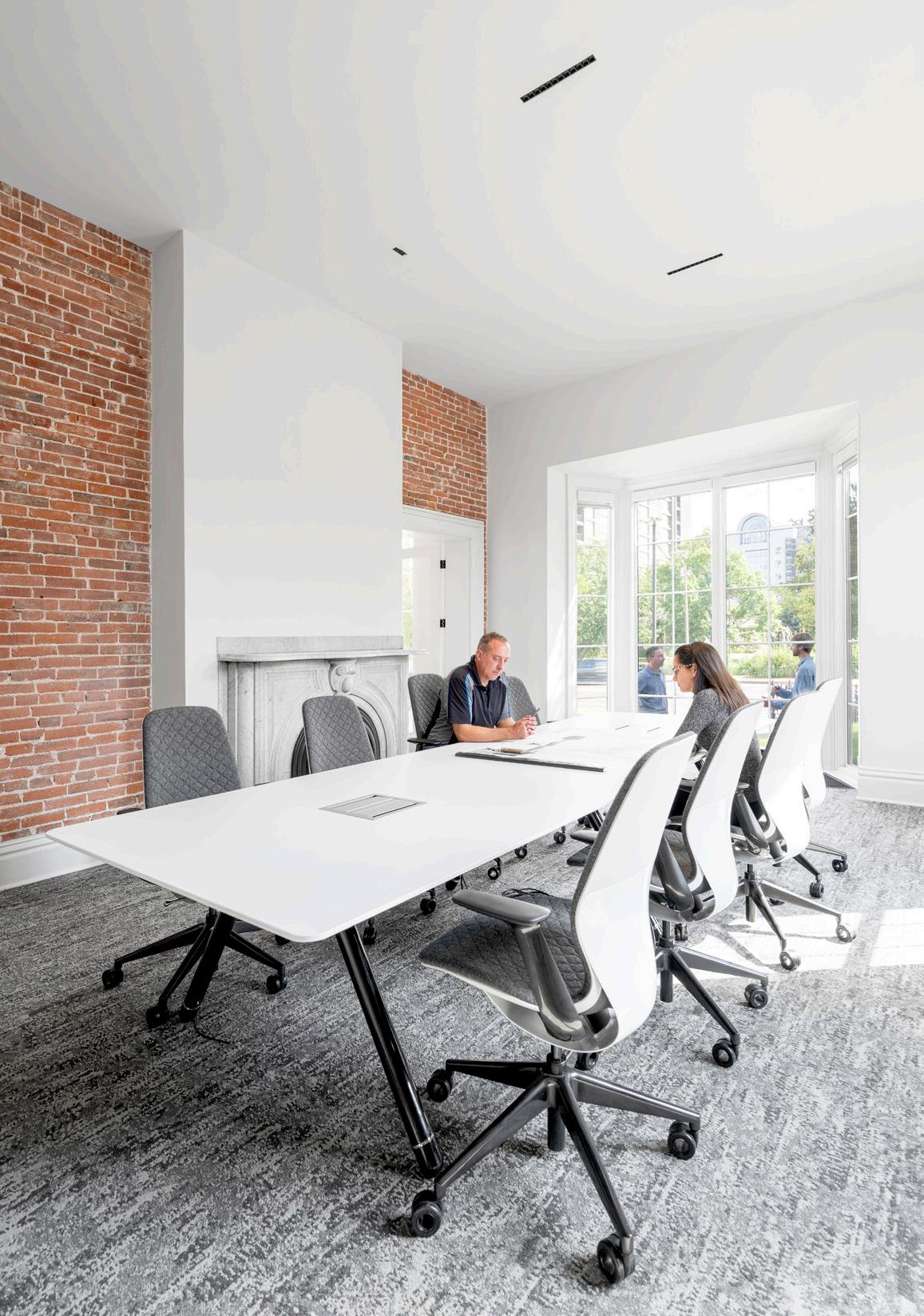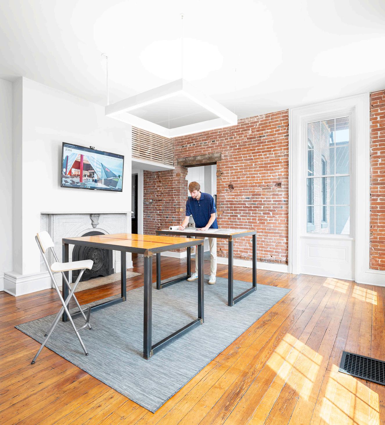 The primary concept of the new office design is to uncover and celebrate the history of the existing architecture. The architects, along with the help of a historian, make a point to expose and showcase historic details that normally go unseen. Historic construction methods and textures such as the use of wood lath, wood lintels, brick arches, and load bearing brick walls are brought to the foreground and stand out against the minimal, clean details of the new architecture. The architects also make a point to restore certain details back to their original state. Wood floors, wood trim, and marble fireplace surrounds are exposed, cleaned, and given new life.