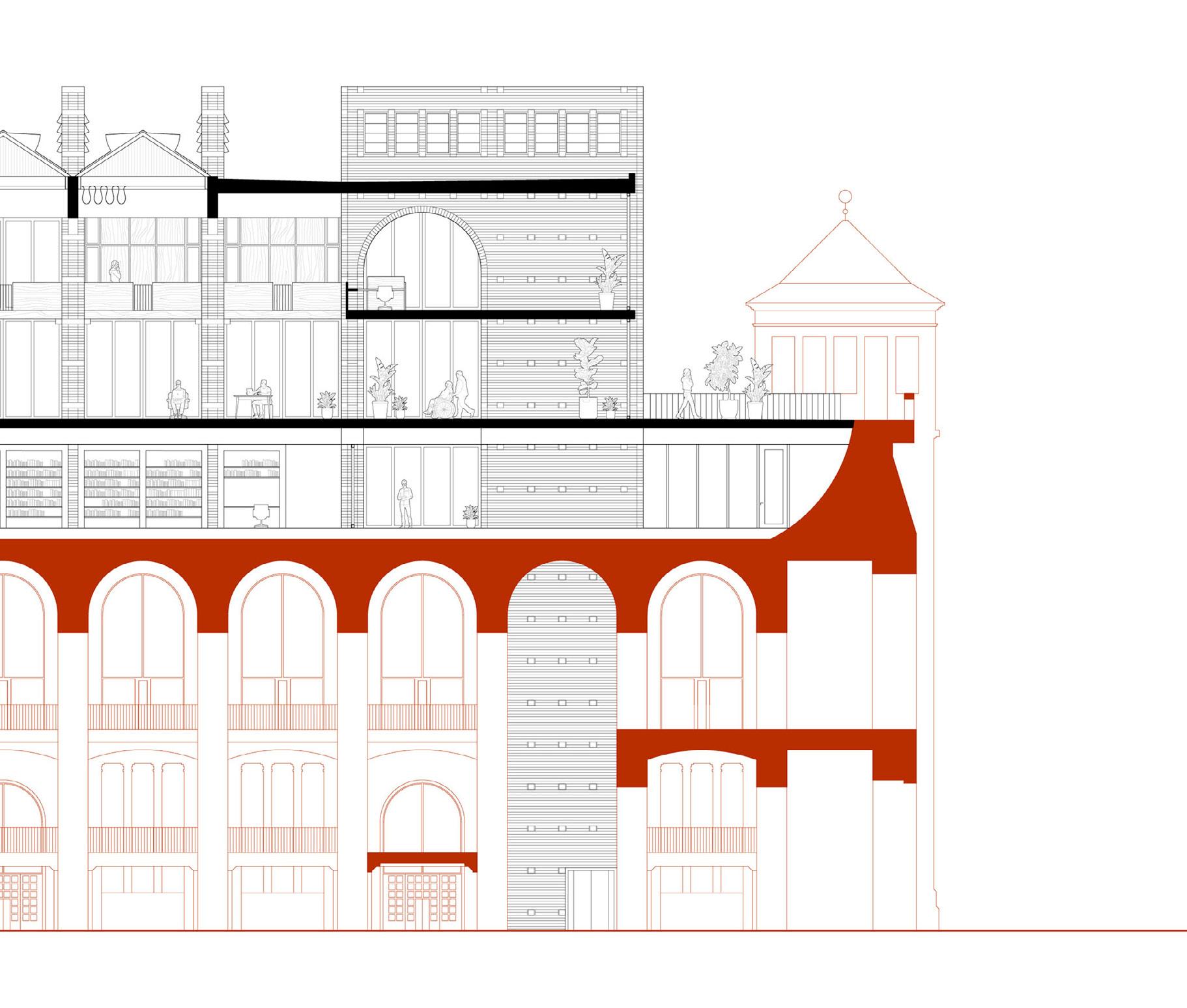 building envelope and new floors. the expansion adds three new levels on top of the existing cistern.