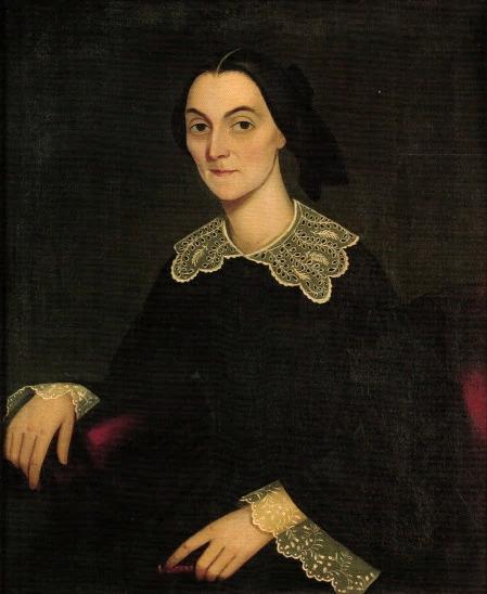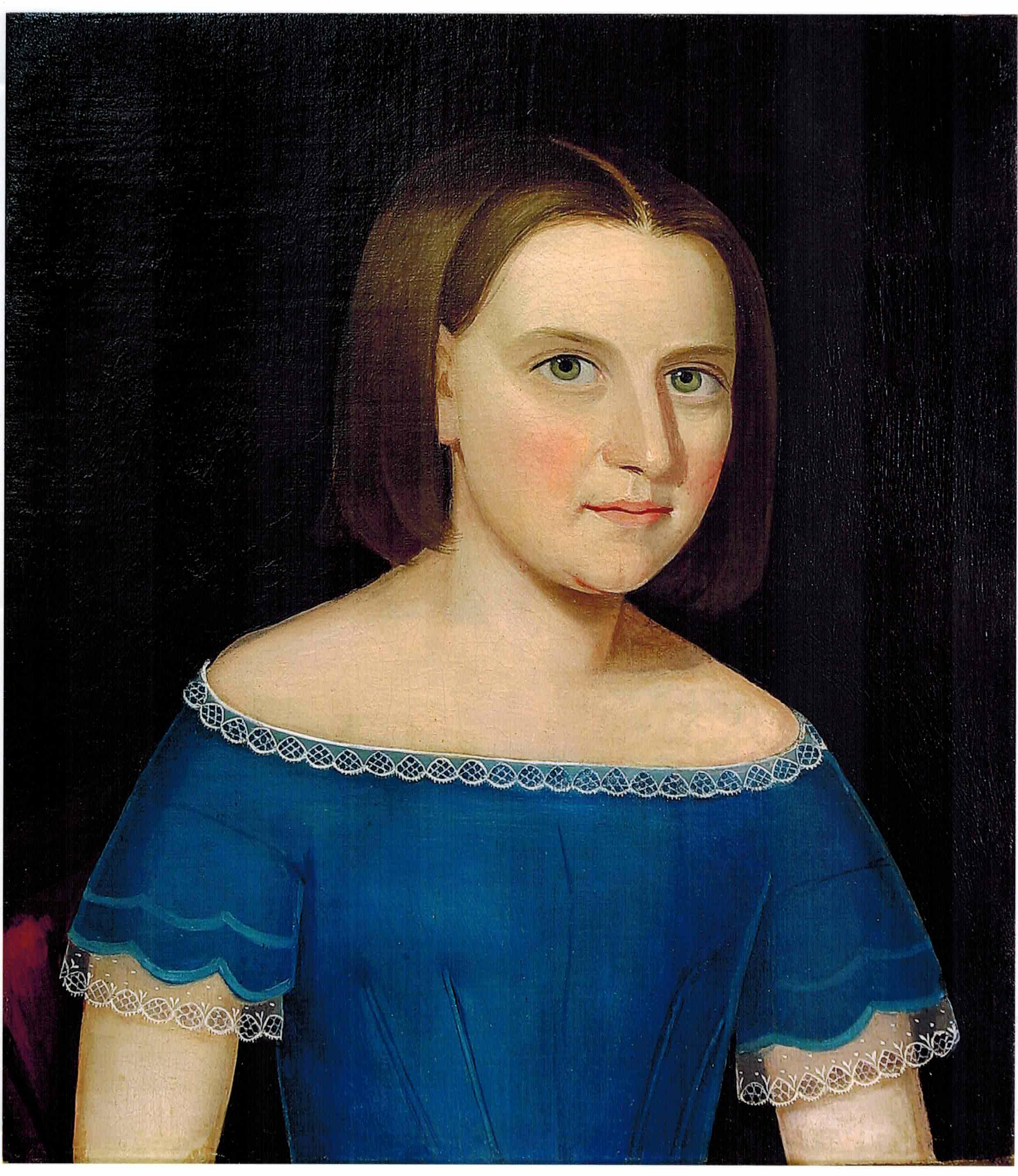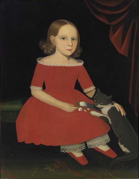 It has been suggested, based on provenance, that the iconic portrait of the girl holding a white cat (page center) may belong to the Raymond family, and hence the related Foster family, including Augusta Maria Foster. By stroke of luck, and close scrutiny, the portraits of Frances Sprague Foster and Judge Ebenezer Foster are datable to 1839. On this basis, and a satisfying resemblance between the child and the rosy-cheeked couple, I have formed a hypothesis that the child is Ann Amelia Foster (1833-1883). This remains speculative, however.