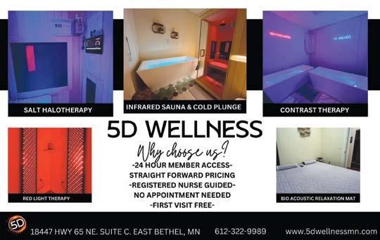 Offering top-of-the-line services to increase overall wellness including infrared sauna/cold plunge, red light therapy, contrast therapy with a hot and cold tub in one private room, salt/ halotherapy combined with infrared sauna, and a king-sized crystal healing mat with bioacoustic features. See ad page 5.