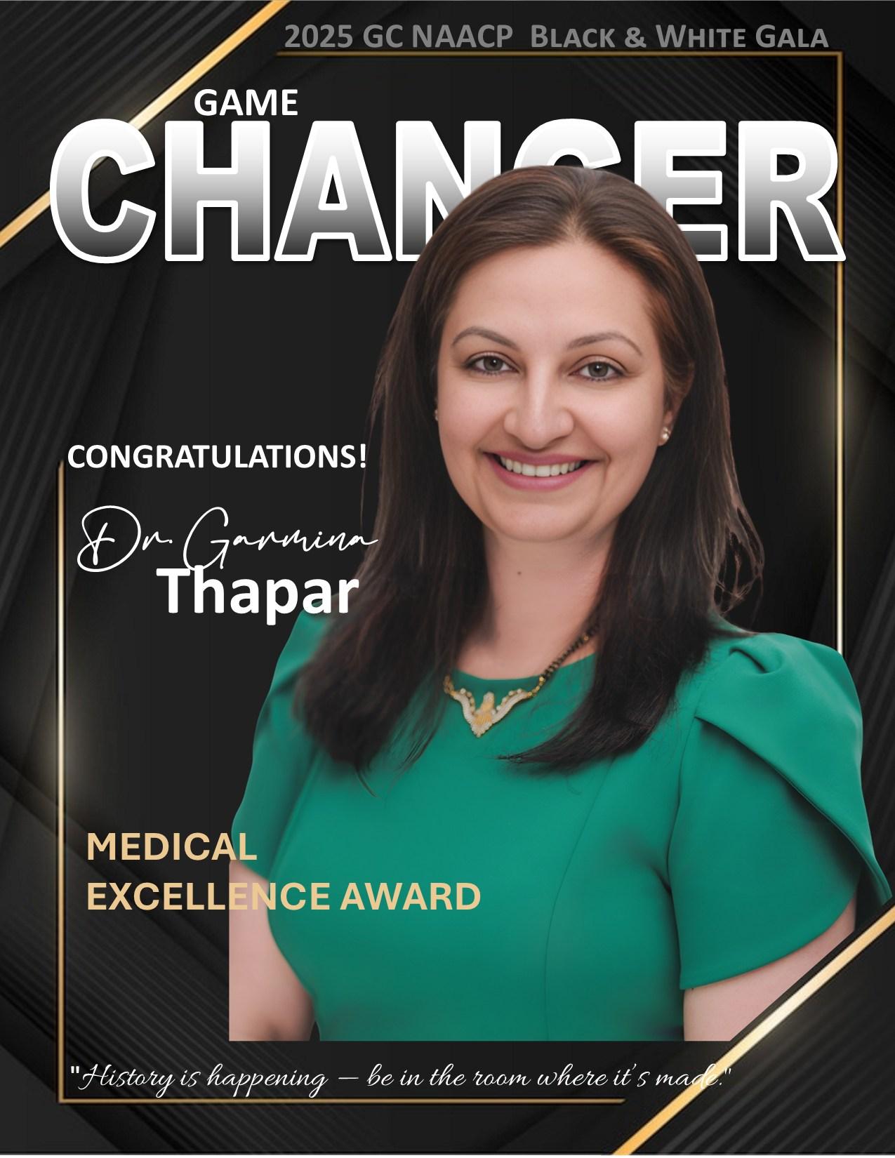 Through her professional dedication, community service, and leadership, Dr. Thapar embodies compassion, integrity, and commitment. Whether caring for patients, mentoring students, or championing diversity, she continues to inspire those around her and strengthen the bonds within her community.