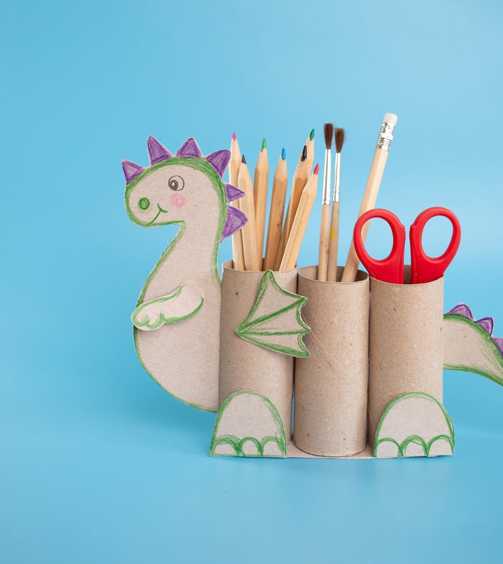 Lako, zabavno i korisno! Od praznih rolni toalet papira možeš napraviti preslatkog zmaja koji će čuvati tvoj pribor!