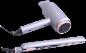 Sušilo: snaga 2200 W, DC motor, 2 brzine i 2 postavke temperature, funkcija hladnog zraka Pegla za kosu: snaga 45 W, keramičke plutajuće ploče (110×24 mm), ravnanje bez kovrčanja i statičkog elektriciteta, kontrola temperature