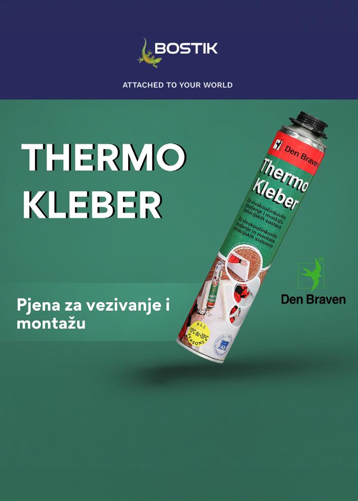 PU Thermo-Kleber je jednokomponentno poliuretansko ljepilo – pjena niske ekspanzije, koje stvrdnjava u prisutnosti vlage te je namijenjeno za lijepljenje i montažu vanjskih izolacijskih fasadnih sustava (EIFS). Osigurava pouzdano prianjanje na beton, žbuku, zidane površine i drvo, omogućujući brzo, sigurno i trajno učvršćivanje izolacijskih ploča.