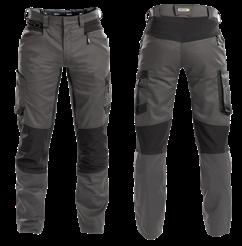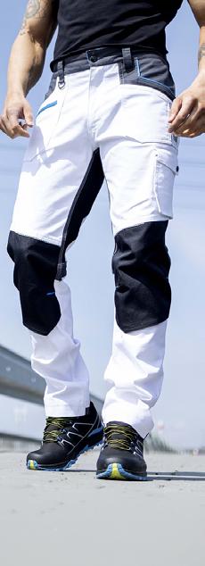 Treger radne hlače farmer jedinstvenog rastezljivog prirodnog pamuka Amalytton® s ekstra fleksibilnim i izdržljivim funkcionalnim umetcima od tehničkog materijala Tabiflex®. Rastezljivi materijal razvijen je korištenjem najnovije tehnologije koja tka visokokvalitetna vlakna.