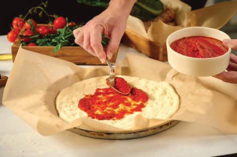 Zatim ga podijelite na dva dijela, svaki stavite u kalup za pizzu (Ø24 cm) i premažite maslinovim uljem.