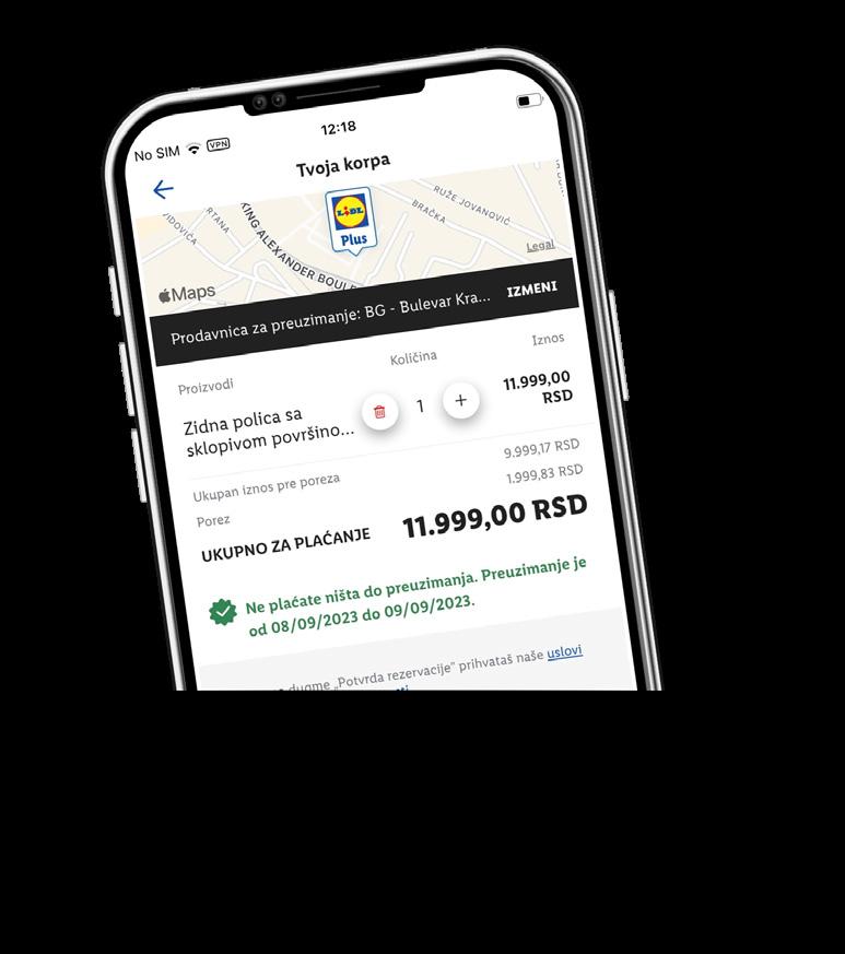 U aplikaciji će ti biti naznačeno kada je moguće preuzimanje u odabranoj prodavnici. Potvrdu ćeš dobiti i na svoju imejl adresu. Ne zaboravi da prilikom preuzimanja poneseš svoj telefon ili imejl potvrdu rezervacije. Obrati se rukovodiocu smene, preuzmi rezervisane proizvode i plati ih na redovnoj kasi.