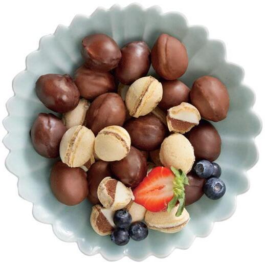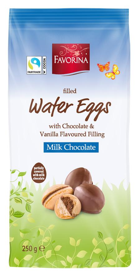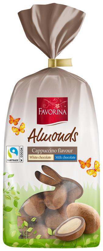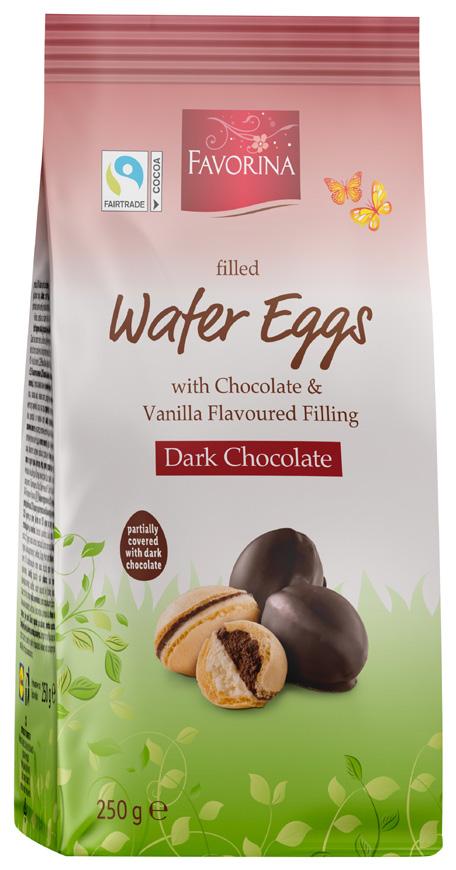 čokoladom sa zabajone ukusom, sa belom i mlečnom čokoladom sa tiramisu ukusom, sa mlečnom čokoladom sa ukusom kokosa ili sa mlečnom čokoladom i vanilom