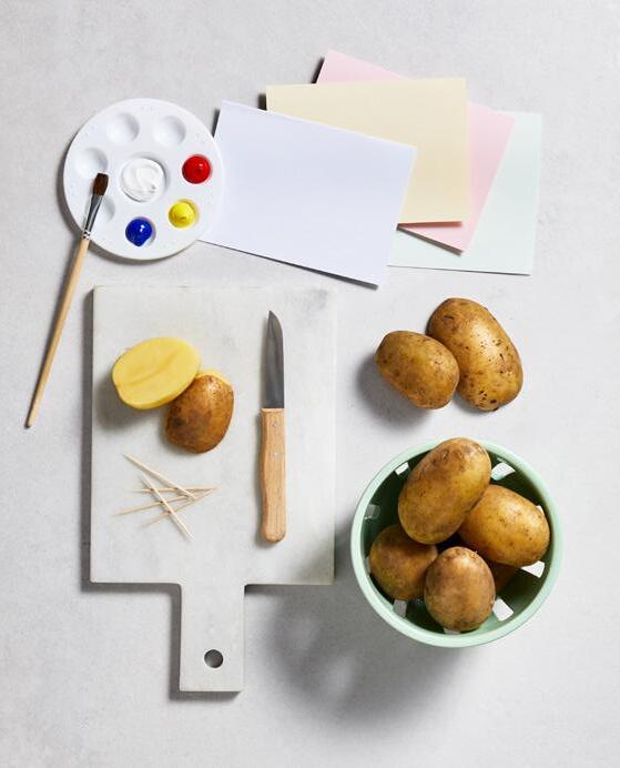 Pripremi zajedno sa klincima uskršnje čestitke i zabavi se uz krompir štampu. Skoči na stranu 13