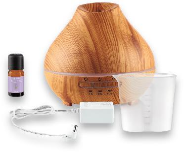Ultrazvučni difuzer uključeno aromatično ulje, strujni adapter i čaša za mjerenje vrijeme rada cca. 6 h zapremnina spremnika za vodu cca. 300 ml dužina kabela cca. 2 m pakiranje