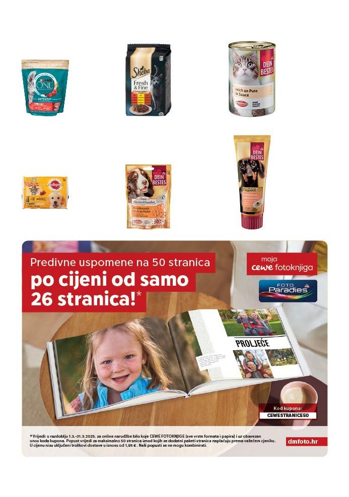 * Ponuda vrijedi od 1.3. do 30.4.2025. Ne odnosi se na kupnju dm darovnih kartica, bonova za mobitel, povratnu naknadu za ambalažu s jednokratnom upotrebom te početne i specijalne dojenačke formule.