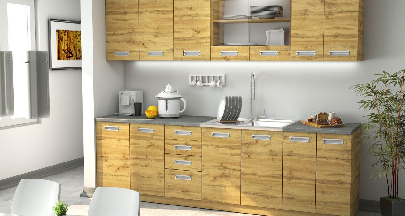 7 * Popusti važe za nove ugovore. Prethodno sniženi artikli su izuzeti iz SVIH akcija. Popusti se ne mogu sabirati. Ne važi za ENC artikle. Ne važi za artikle robne marke Stokke. **Sve cene su prikazane u RSD i važeće su za sve vrste plaćanja tokom trajanja ovog akcijskog kataloga. dok traju zalihe dok traju zalihe dok traju zalihe aspirator sudomašina frižider rerna ploča za kuvanje UMESTO 57.999,- RSD 6 KUHINJSKI BLOK DRVENI DEO 39.999,31% POPUSTA UMESTO 28.999,- RSD 7 KUHINJSKI BLOK - DRVENI DEO 21.999,24 % POPUSTA UMESTO 264.999,- RSD 8 KUHINJSKI BLOK S APARATIMA 199.999,24 % POPUSTA UMESTO 6.999,- RSD 9 TRPEZ. STOLICA 4.999,28% POPUSTA UMESTO 8.999,- RSD 11 TRPEZ. STOLICA 6.999,22% POPUSTA UMESTO 7.999,- RSD 10 TRPEZ. STOLICA 5.999,25 % POPUSTA 6: Kuhinjski blok Fiona New, boja: wotan hrast, d. 260 cm (05860038/03) 7: Kuhinjski blok Liza , boja: bela/sonoma, bela/artisan hrast, bela/antracit siva, dim. 180x200x60 cm (05860001/03-05) 8: Kuh. blok s aparatima Dominika Elettra 300, levi ili desni ugao,