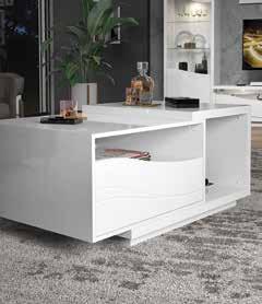 Savremeni dizajn izrazen kroz jaku geometrijsku formu unosi dinamiku u enterijer, a elegantan spoj dekora Pacifik oraha i bez boje u visokom sjaju stvara toplinu ambijenta.