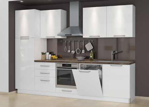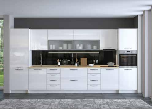 Savršena površina frontova u beloj boji visokog sjaja lakiranih UV lakom, sa unikatnim reljefom u dekoru Tobacco hrasta i „push to open“ mehanizmom. LAGANA NA DODIR
