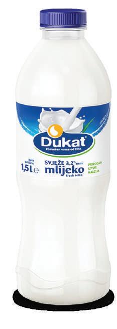 Svježe mlijeko 1,5 L 3,2% m.m. 1,26 €/L Dukat Acidofil 180 g 3,28 €/kg