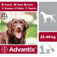 ampula za ubijanje i odbijanje krpelja, komaraca, stajskih muha, ubijanje buha i odbijanje papatača kod pasa od 1,5 do 4 kg, 0,8 ml = 6,28 EUR (7,86) od 4 do 10 kg, 1,6 ml = 7,44 EUR (9,31) od 10 do 25 kg, 3,6 ml = 8,60 EUR (10,75) od 25 do 40 kg, 4,7 ml = 9,24 EUR (11,56) > 40 kg, 8 ml =
