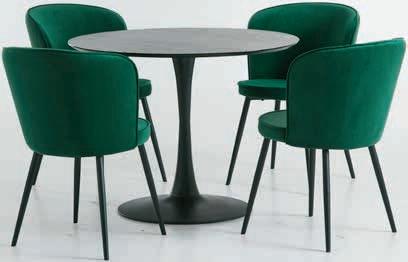 Sto: jasenov furnir i čelik. Ø100xV75 cm. Stolice: baršun i čelik. Sto* 24999,- 20000,- Stolica 9999,- 8000,-