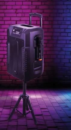 izlazna snaga: 160 W, Bluetooth 5.3, vrijeme punjenja: 3.5 h, maks.vrijeme reprodukcije glazbe: 12h, 3,5 mm audio kabel ulaz, IPX4 zaštita, dvostruki ulazi za mikrofon i gitaru 1 kom