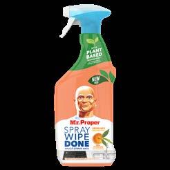 Mr. Proper sprej će promeniti način na koji čistite površine. Poprskajte svuda, obrišite i gotovo. Veoma jednostavno. Trenutno uklanja masnoću i prljavštinu sa površina, bez dodatnih koraka - nema trljanja, nema tragova. Ostavlja samo sjajnu čistoću zahvaljujući biljnim sastojcima.