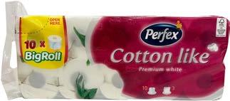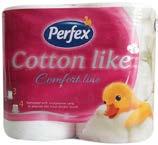 Cotton like, pruža do sada nepojmljivu mekoću bez gubitka čvrstine. Tajna je u milionima sićušnih isprepletanih vlakana između kojih je vazduh, vlakna daju čvrstoću, a vazduh između njih mekoću. Perfex toalet papiri i ubrusi, potpuno prirodno.