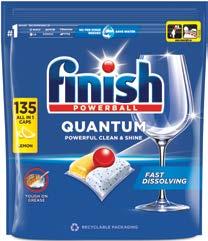 Finish napredna formula efikasno uklanja sve vrste ostataka hrane bez prethodnog ispiranja, čak i tvrdokorne mrlje nakon 24h. Kapsule neguju vaše staklene sudove osiguravajući sjaj. Štedimo vodu. Nije potrebno prethodno ispiranje.