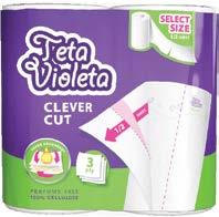 Teta Violeta Clever Cut Picnic kuhinjski ubrusi su inovativno rešenje za uštedu i ekonomičnost, ali i za mrlje za koje ne želimo da koristimo ceo list papira. Teta Violeta Clever Cut Picnic kuhinjski ubrusi napravljeni su od 100% celuloze i potpuno su bezbedni u kontaktu sa hranom. Tri sloja omogućavaju maksimalnu moć apsorpcije. Štampa u boji na papiru, dobijena od boja koje, se koriste u prehrambenoj industriji.