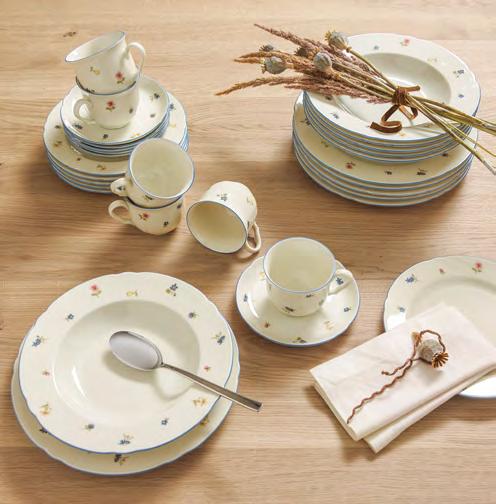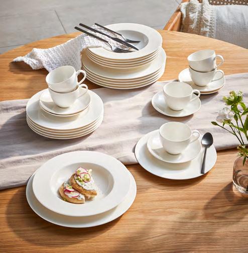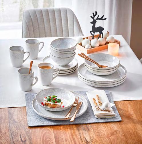 Kutija za hleb, vešt. mat. boja: bela, poklopac od bambusa, 5,5 l (87290752/02) Kombinovani servis Bergen 24/1, za 6 osoba, porcelan, boje: siva ili bež, sastoji se od 6 plitkih tanjpira Ø 27cm, 6 desertnih tanjira Ø 21,5 cm, 6 velikih šoljica 400 ml i 6 činijica od