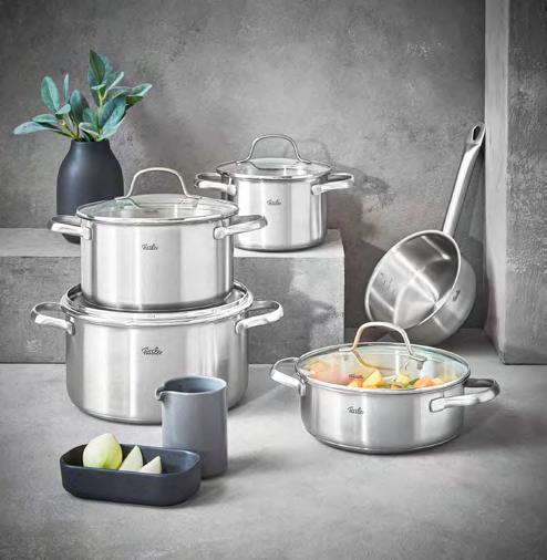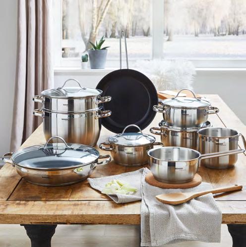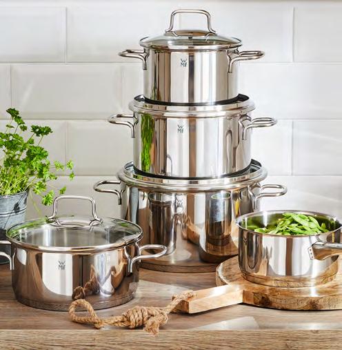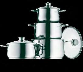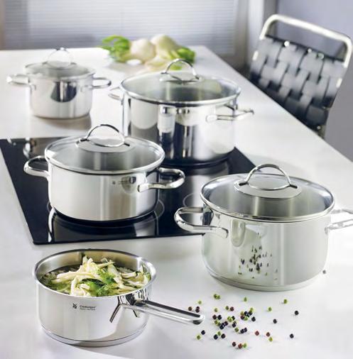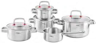 Set šerpi Cucina Perfetta 5/1, nerđajući čelik, sastoji se od pet šerpi različitih veličina i zapremnina s pripadajućim staklenim poklopcima, pogodno za sve vrste šporeta i rernu do 220°C (s poklopcima do 180°C). (68760195/07)
