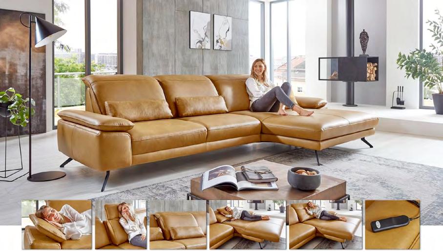 1: Ugaona garnitura Rivello, levi ili desni ugao, koža, boja: žuta, otoman desno, s podešavanjem uzglavlja, dim. 328x193 cm. (02450354/02,10)