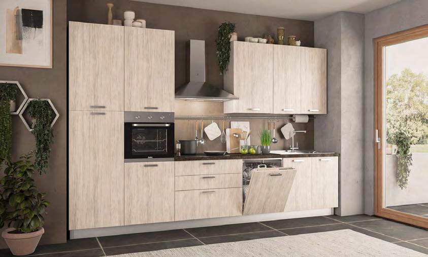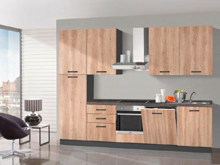 Kuhinjski blok sa aparatima Stella 300 New, dim. 300x240x60 cm, boja: hrast Nebraska. U cenu su uključeni BEKO električni aparati: ugradna staklokeramička ploča HIC64401, rerna BIE22101X, frižider BDSA250K3SN, aspirator ELICA TILLY CWM IX/A/60, mašina za pranje sudova (04020006/02)