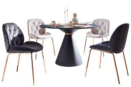 Trpezarijski sto Sir, boja: crna, metal / staklo /keramika, dim. 120x76x120 cm. Trpez. stolica Lady, boje: taupe ili siva, sa zlatnim nogarima (00690049/01; 29480006/01,04)