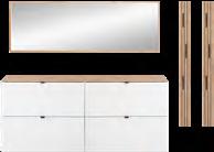 Komadni nameštaj Dallas, boja: hrast wotan/bela visoki sjaj. Komoda, 4 otvorena odeljka, 3 vrata, dim. 146x93x42 cm. Komoda , 4 otvorena odeljka, 2 vrata, dim. 108x126x42 cm 19.999,- 15.999,- RSD Komoda , 3 otvorena odeljka, 2 vrata, dim. 108x93x42 cm 14.999,- 11.999,- RSD TV komoda , 4 otvorena odeljka, nagibna vrata, dim. 184x58x42 cm 17.999,- 13.999,RSD. Cipelarnik, 4 otvorena odeljka, 2 vrata, 4 police, dim. 108x138x35 cm 22.999,- 17.999,- RSD. Komoda , 4 otvorena odeljka, 4 vrata, dim. 184x93x42 cm 25.999,- 19.999,- RSD. Ormar za predsoblje, 6 otvorenih odeljaka, 1 vrata, 5 polica, dim. 91x201x30 cm 23.999,- 18.999,- RSD (21400164/02-07,11)