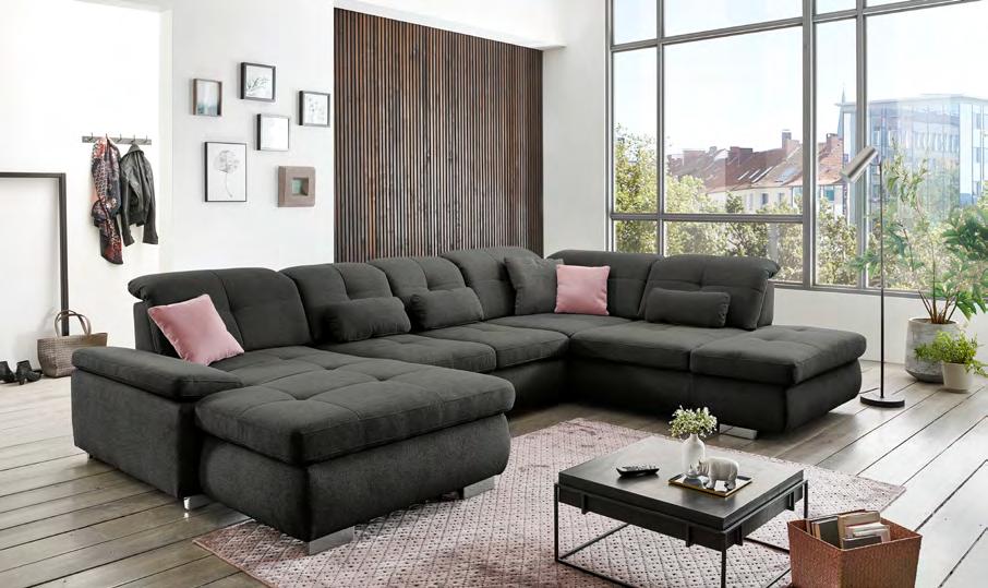 3: Ugaona garnitura Melfi, levi ili desni ugao, boja: antracit siva, dim. 350x73/96x245 cm, ležaj 120x300 cm, 3 leđna jastuka, podešavanje naslona za ruke i glavu sanduk za posteljinu uključeni u cenu (22200286/01-02)