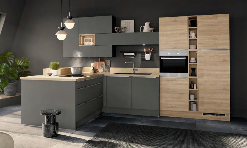 Novel kuhinje stvorene su za izazove i zajedno sa vama spremno odgovaraju na zahteve modernog i užurbanog života. Nije važno da li ste samac, volite li minimalizam ili raskoš, da li je porodica velika ili mala - one su multifunkcionalne, sveže, moderne, velike ili male. U njima možete s radošću kuvati, jesti, zabavljati goste ili jednostavno uživati - to su kuhinje koje u potpunosti žive sa vama! (0210)