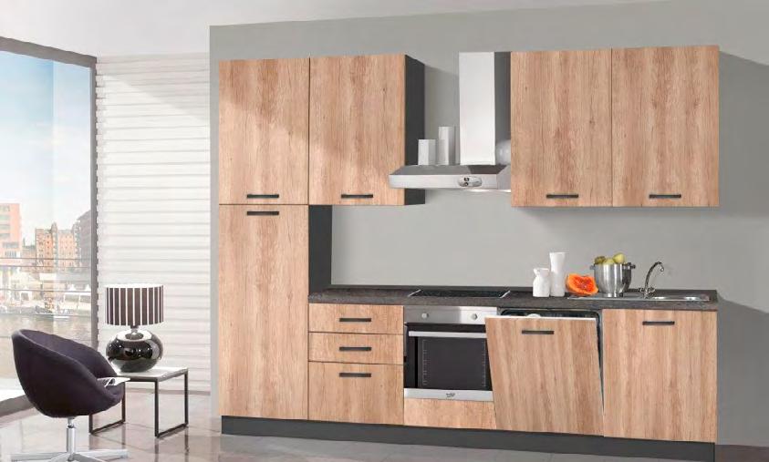 blok sa aparatima Stella 300 NEW, 300x240x60 cm, boja: hrast Nebraska. U cenu su uključeni električni aparati: ploča za kvanje HIC64401, rerna BIE22101X, frižider BDSA250K3SN, aspirator ELICA TILLY CWM IX/A/60, sudomašina DIN24310. (04020006/02)