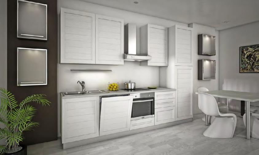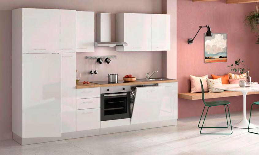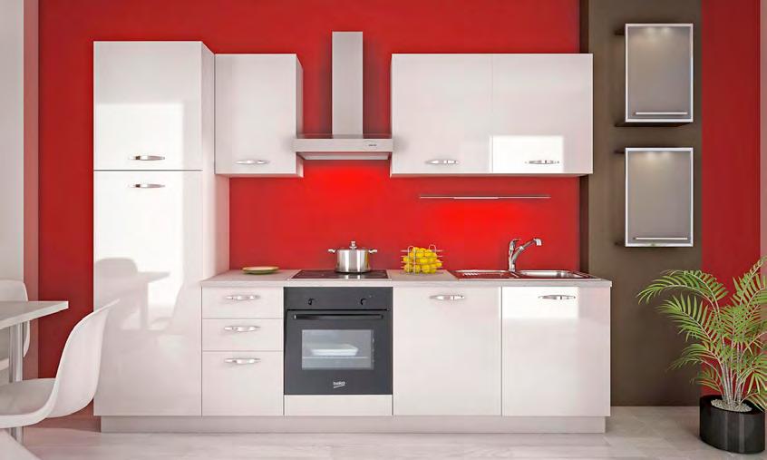 blok s aparatima Irene, levi ili desni, boja: bela, dim.: 300x216x60 cm. U cenu kuhinje uključeni su aparati Beko: ploča za kuvanje HIC64401, rerna BBIC14000X/A, kombinovani frižider BDSA250K3SN/F, sudomašina DIN35320/E, aspirator Tilly 60/X/C, sudopera i slavina (11630059/01)
