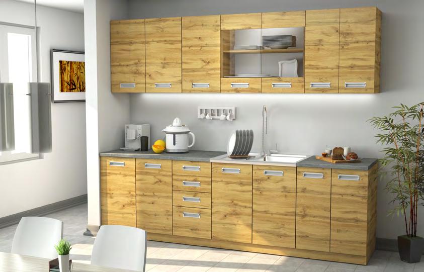 Kuhinjski blok Fiona boja: wotan hrast / siva, širina: 260 cm. Električni uređaji, rasveta i sudopera dostupni uz doplatu (05860038/03)