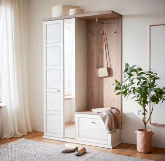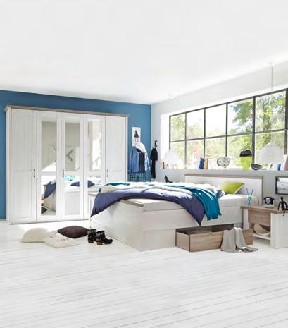 Spavaća soba Luca, boja: bela/hrast. Ormar Luca , 5-krilni sa 3 ogledala, dim. 241x212x62 cm. Ram kreveta Luca s fiokom, dim. 180x200 cm, 2x noćni ormarić dim. 60x49x42 cm. Letvice i dušek uz doplatu (25220096/01-02)