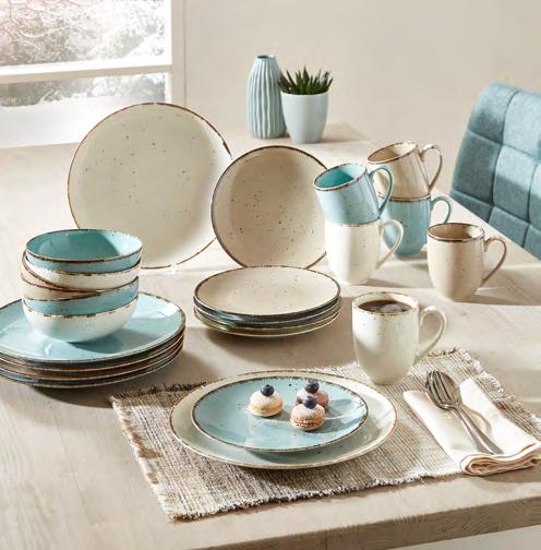 Kombinovani servis Urban Life 24/1, porcelan, boja: bela/prirodna/tirkizna. Set se sastoji od: 6 velikih šoljica, 6 činija, 6 plitkih i 6 desertnih tanjira (56530035)