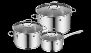 Set šerpi San Francisco 5/1, nerđajući čelik 18/10, 5 šerpi različitih veličina i zapremnina, 4 staklena poklopca, s mernom skalom, široki rub za izlivanje, supertermičko dno za sve vrste šporeta (37240140)