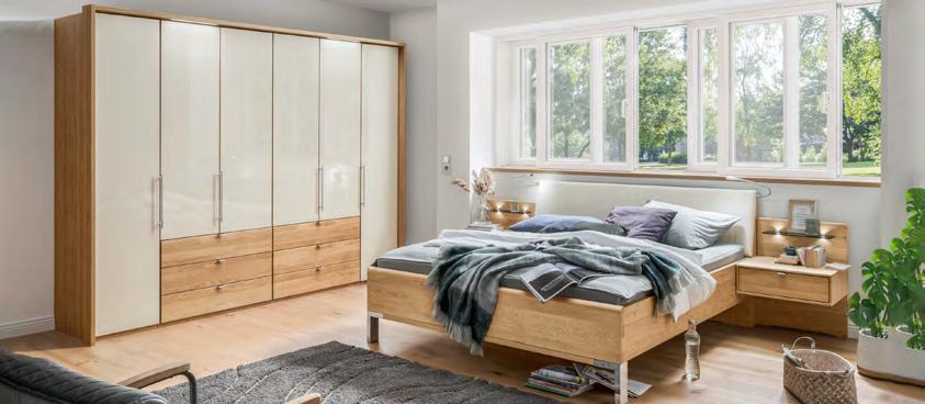 Spavaća soba Amato, hrast delimičan masiv/šampanj staklo. Program odlikuje vrhunski nemački kvalitet i mogućnost izbora velikog broja različnih elemenata za potpuno prilagođavanje Vašim željama. Ormar, 6-krilni sa 6 fioka, dim. 300 x 216 x 58 cm. Ram kreveta s noćnim ormarićima, 180 x 200 cm 135.999,- 101.999,- RSD Paspartu s osvetljenjem, paneli za noćne ormariće s osvetljenjem, rasveta za uzglavlje, dušek i letvice uz doplatu (04420043/07-08)