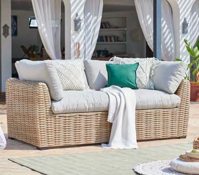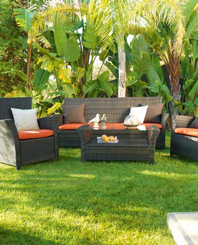 Luksuzna grarnitura Borneo chocolate, napravljena od metalnog rama i veštačkog pletiva, očarava svojim prirodnim i kvalitetnim izgledom. Sastoji se od troseda, dve fotelje sa jastucima i klupskog stola . Dodatne navlake za jastuke uključene u cenu i mogu se naizmenično menjati (22590010/19)