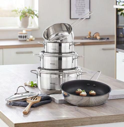Set šerpi Verona 5/1, nerđajući čelik, sa PTFE nelepljivim premazom, sastoji se od 2 šerpe za meso Ø 16 i 20 cm, šerpe za povrće Ø 24 cm, šerpe sa drškom Ø 16 cm i tiganja za pečenje Ø 24 cm, sa staklenim poklopcima (68760174)