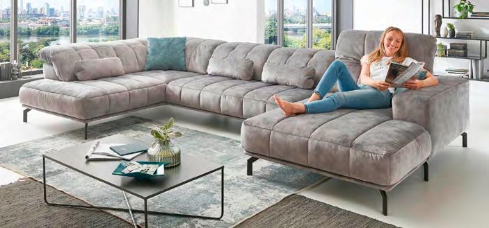 Garnitura za sedenje Klagenfurt, levi ili desni ugao, velur, boja: srebrna, 212x383x195 cm. Tabure, 77x127x43 cm (02450347/02-03,15) XXXL izbor sastava, boja i materijala
