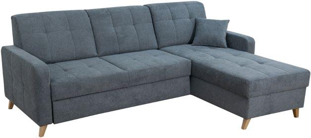 1: Ugaona garnitura Tim, levi ili desni ugao, boja: siva, dim. 250 x 167cm, ležaj dim. 123 x 194 cm, sanduk za posteljinu i podešavanje naslona za glavu uključeni u cenu (29910023/01-02)