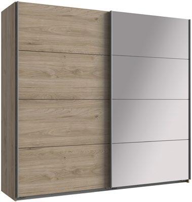 5: Ormar s kliznim vratima Ernie, boja: hrast, 2 vrata, 2 podesive police, 2 šipke za odeću, 4 ogledala, dim. 225x210x65 cm (17870490/07)