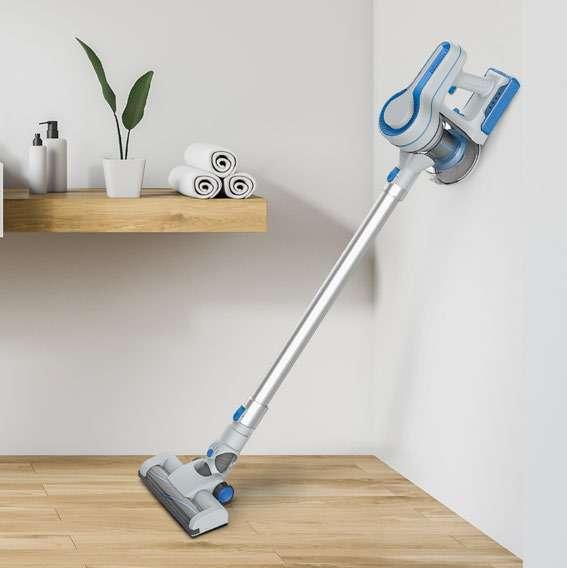 2 stupnja usisavanja, HEPA filter, ciklonska tehnologija bez vrećice, motorizirana rotirajuća četka, s priborom: četka, mlaznica za uske prostore, aluminijska cijev, rotirajuća električna četka i zidni nosač, punjiva litijeva baterija: 2200 mAh / 22,2 V.