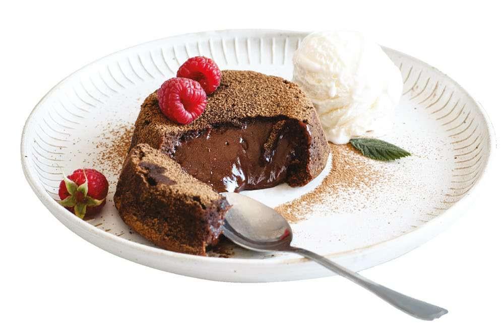 Poslužite topli lava cake uz kuglicu sladoleda od vanilije i po želji lagano pospite šećerom u prahu.