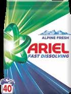 Deterdžent praškasti za pranje rublja Ariel 2,2 kg (1 kg = 5,00 €) tekući 1,8 l (1 l = 6,11 €) kapsule 30 kom (1 kom = 0,37 €)