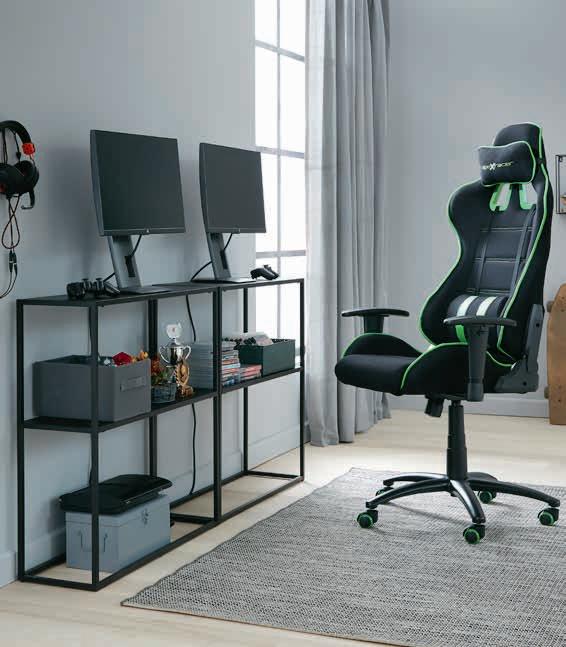 Veštačka koža. Jastuci za dodatnu podršku za lumbalni deo leđa i vrat. Sa 1D podesivim naslonima za ruke, kliznim nagibnim mehanizmom i podesivom visinom. Š70xV126-136xDub70 cm 32999,-